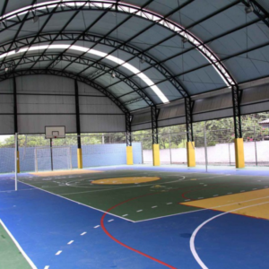 esportivas, estas edificações podem ser em concreto, metálicos ou mistos, contando ainda com os fechamentos laterais , em placas de concreto pré- moldada, fechamento metálico em chapa trapezoidal ou ainda em alvenaria de bloco de concreto.